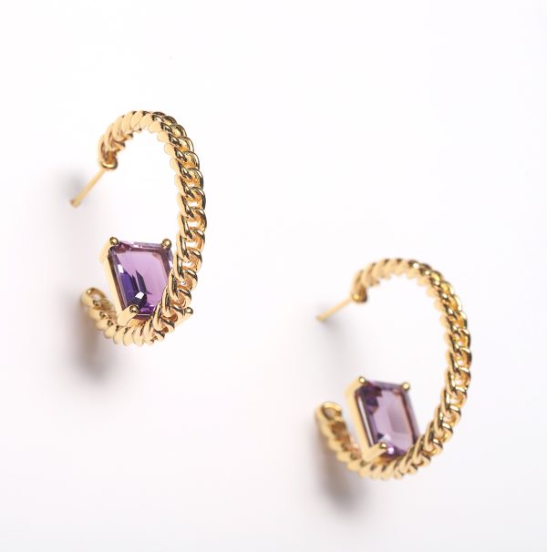 925 sterling silver gemstone earring with amethyst in 18K gold plated